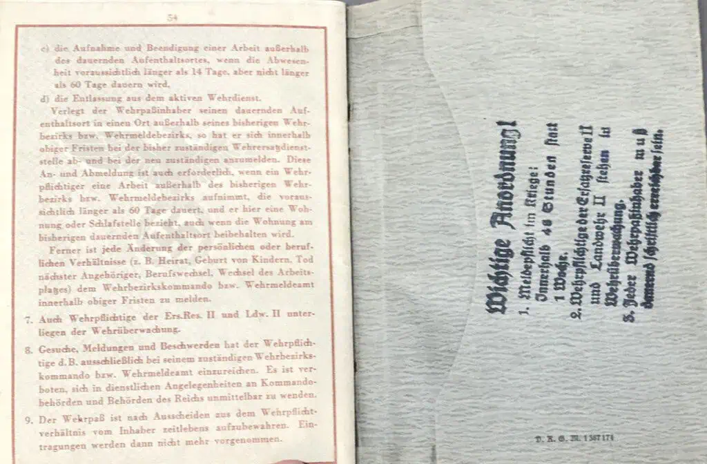 Papers Please! An OUTSTANDING WWII German Army (Heer) Soldier’s WEHRPASS. (Wehrpaß) Certified