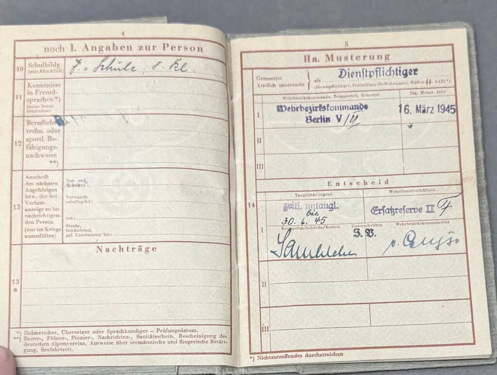 Papers Please! An OUTSTANDING WWII German Army (Heer) VERY YOUNG Soldier’s WEHRPASS. (Wehrpaß) Certified