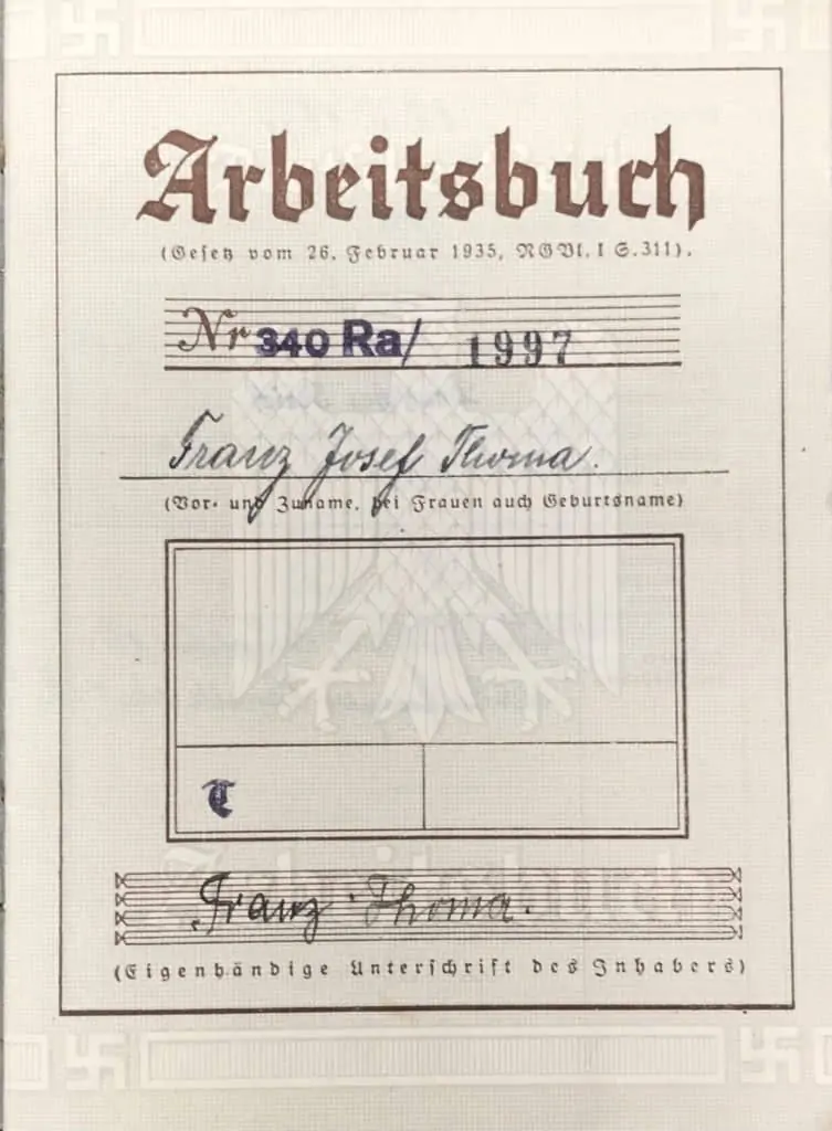 PAPERS PLEASE! Original WWII Era NSDAP (NAZI) Arbeitsbuch Identity Document Certified By The Gettysburg Museum Of History