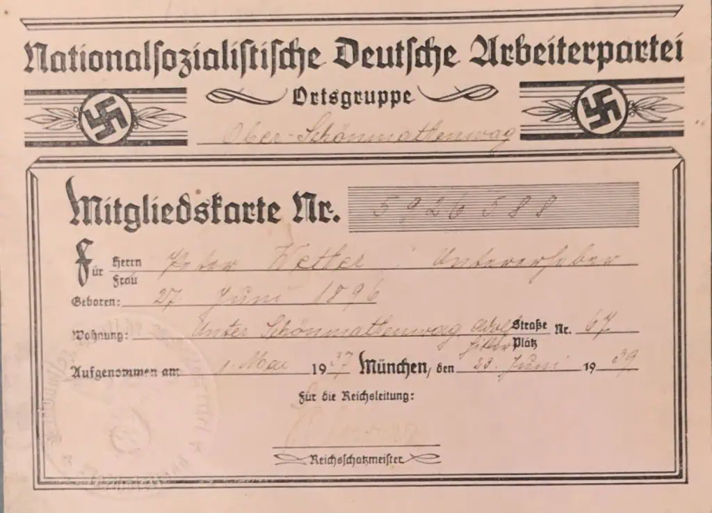 PAPERS PLEASE! Original WWII Era NSDAP (NAZI PARTY) I.D. Card Certified By The Gettysburg Museum Of History