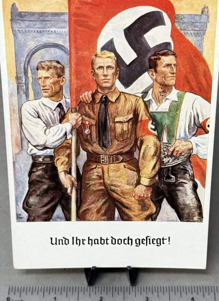RARE NSDAP (NAZI PARTY) SA (BrownShirts) Postcard Circa 1930’S Horst Wessel Leid -Die Fahne Hoch Certified