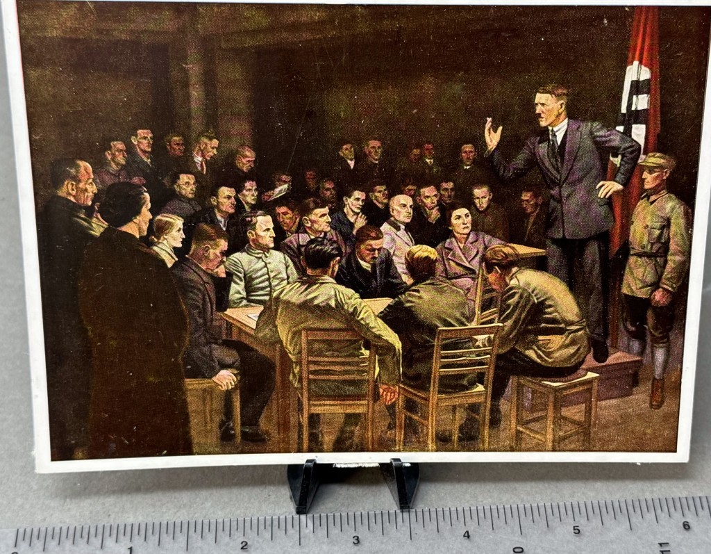 Rare OUTSTANDING Adolf Hitler Postcard Circa 1930’s Certified By The Gettysburg Museum Of History. Excellent 1930’s as the new Chancellor after his appointment by President Hindenburg. This is the choice Hitler early painting image of him speaking Nice used example with the expected age and wear. 100% Guaranteed to be authentic. Original period images of Hitler are rare, most were destroyed at the end of WWII. A very collectible size in excellent condition. Complete museum documentation (COA) Provided. Certified by The Gettysburg Museum of History. The Gettysburg Museum of History does not support or condone Adolf Hitler or the Nazi Party and is only offering this as a historic relic. Please see our other items. Also note when browsing our web site there are several pages of items, at the bottom of the list look for other page numbers. EXCELLENT EARLY EXAMPLE! Don’t Miss It! )