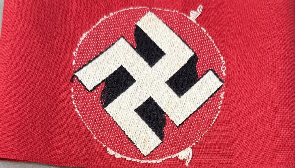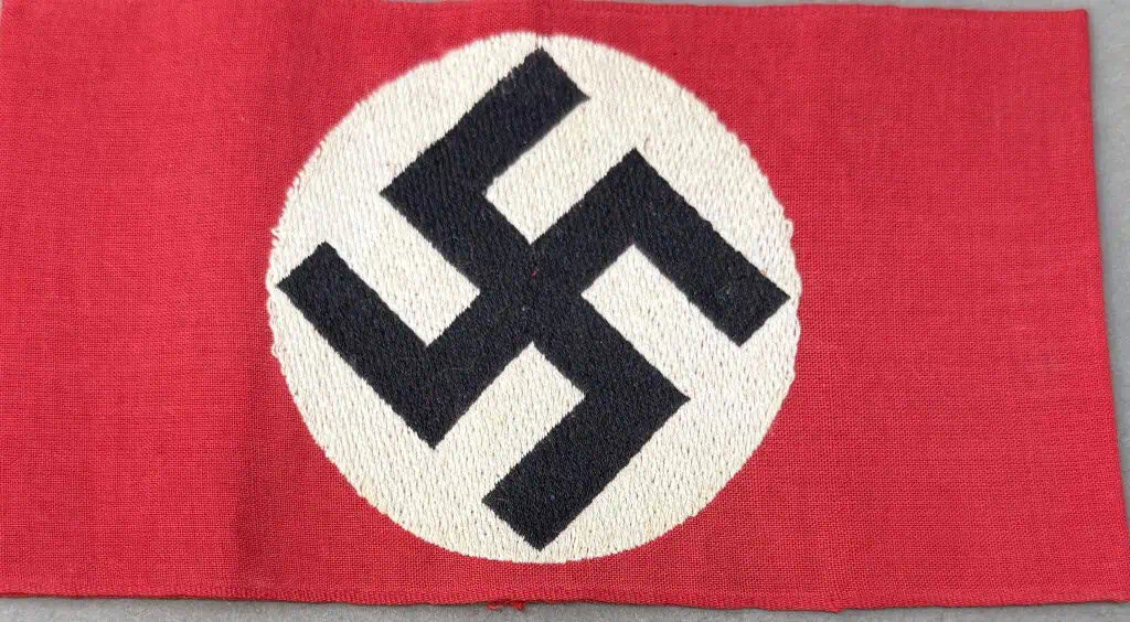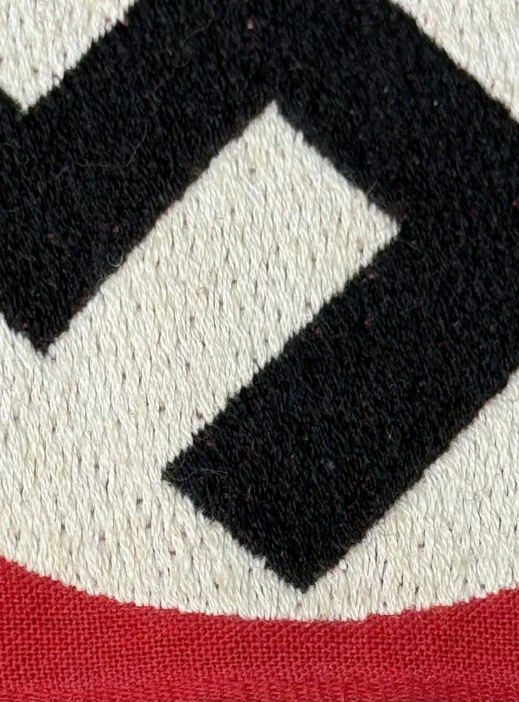 Original WWII Nazi German BEVO Construction Armband Brought Home By A U.S. Veteran. A U.S. vet bring back in good used condition. Some wear from storage and use. Deluxe version of the Nazi Arm Band. The most recognizable pieces of insignia associated with the Nazi regime is the swastika armband. Utilized by pretty much by all the organization of the Third Reich in one form or another. The swastika, (a Sanskrit word meaning “well-being”), is an ancient symbol that was utilized in numerous diverse cultures and signified both the cycle of life and the sun. The swastika was also a Nordic rune and the pagan Germanic symbol for Thor, God of Adventurers. A high-quality cotton cloth materiel. approximately 9cm diameter bevo woven white disk, and high quality bevo swastika (see photos). A VERY EARLY EXAMPLE! A nice, quality example. Some slight storage wear Gettysburg Museum Certified (COA) provided. Rare 100% Guaranteed to be authentic. Brought home by a U.S Veteran as a trophy of war. Sold for historic purposes only. See our other pieces on our web site. Also note when browsing our web site there are several pages of items, at the bottom of the list look for other page numbers. Do not miss this one! NICE BUT USED EXAMPLE! Armbands and are in HIGH DEMAND! High Quality VERY Desirable Bevo Version.