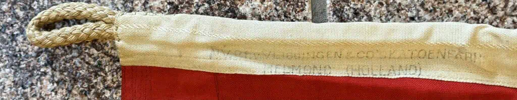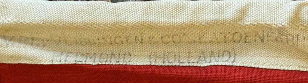 Original WWII Era German Nazi Party Flag Certified. A standard style large Cloth banner type flag. Utilized by pretty much by all the organization of the Third Reich in one form or another. The swastika, (a Sanskrit word meaning “well being”), is an ancient symbol that was utilized in numerous diverse cultures and signified both the cycle of life and the sun. The swastika was also a Nordic rune and the pagan Germanic symbol for Thor, God of Adventurers. In good condition DOUBLE sided (mirror image on back side) has the size stamp of 50/85 (centimetres) witch is 20″/34″! standard wool bunting style material with screened white disk and swastika. We placed a helmet on the flag for size reference. A fantastic piece of WWII history . Has the original rope loops for attaching to a pole. Has a VERY RARE OCCUPIED HOLLAND MAKER STAMP and HEAVY DUTY REINFORCED SEWN EDGES (See Photos) These were for boats and some call these flags “U-BOAT” FLAGS!!! Very Rare And Desirable Style! In good but used condition with minor storage wear no fading a few spots and pin holes (see photos) good condition, great but used! This flag is A good quality version and one of the better sizes for the most discriminating and cultivated collector. Even with the minor condition issues it Overall a very collectible flag with lots of history Nice period used flag captured by a U.S. Veteran and brought home as a war trophy. Complete museum documentation (COA) Provided. Certified by The Gettysburg Museum of History. The Gettysburg Museum of History does not support or condone Adolf Hitler or the Nazi Party and is only offering this as a historic relic. Please see our other items. Also note when browsing our web site there are several pages of items, at the bottom of the list look for other page numbers. RARE IN THIS SIZE. OUTSTANDING USED EXAMPLE! NSDAP U-BOAT FLAGS ARE GETTING TOUGHER TO FIND AND ARE HIGLY DESIRABLE TO HISTORIANS AND COLLECTORS! Don’t Miss It!