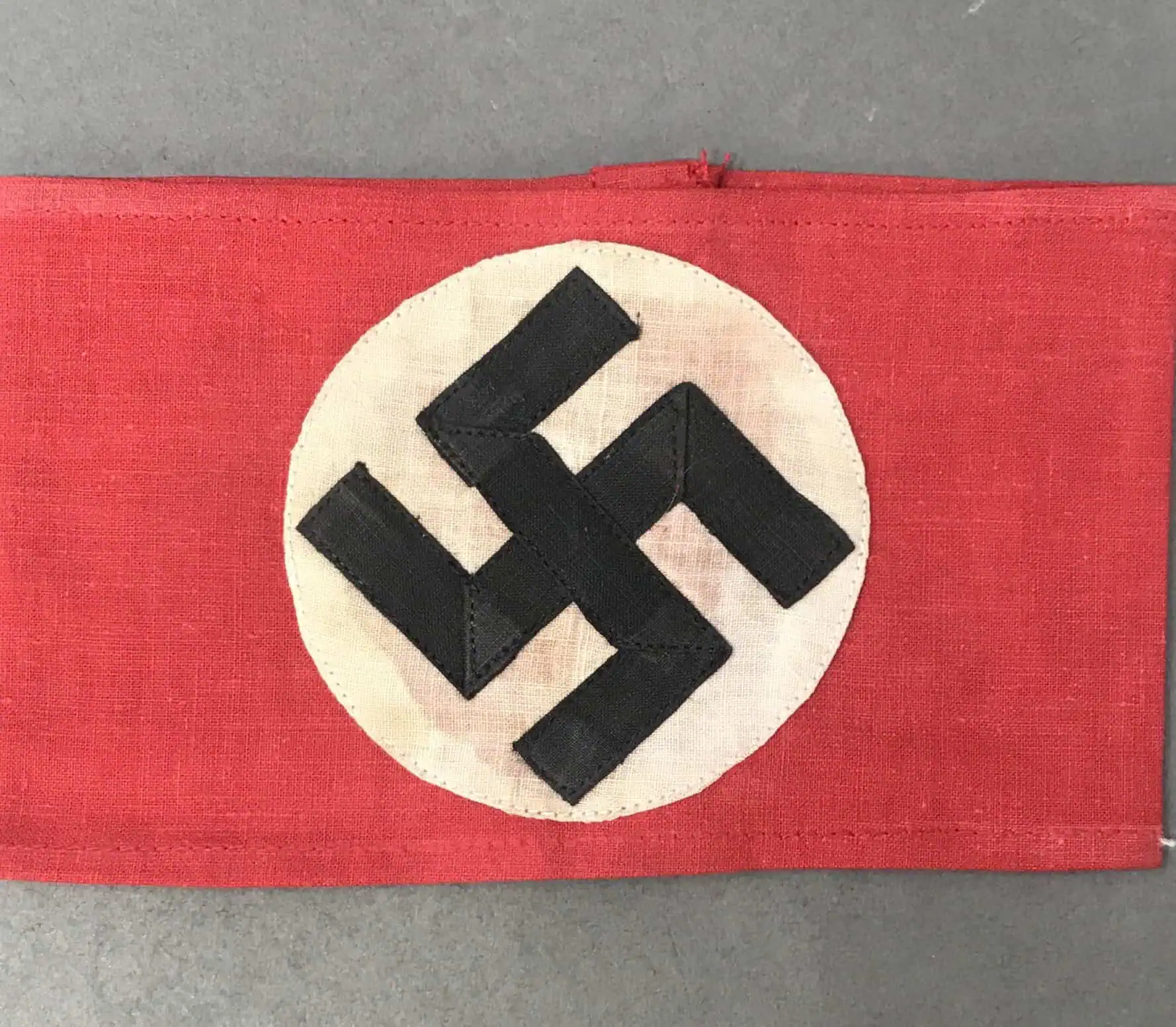 Original WWII German NSDAP (NAZI) NATIONAL WAR FLAG. (Reichskriegsflagge) Brought Home By A U.S. Veteran Certified. The national war flag was flown on all Kriegsmarine, (Navy), warships, Luftwaffe, (Air Force), airfields and all buildings owned by the Wehrmacht, (Armed Forces). The flag was also to be hoisted daily at all occupied barracks and was also utilized at victory parades and special events along with the standard national swastika flag. This example is the second pattern War Flag, circa 1937/38-1945. single piece, dual sided, printed wool/linen construction national war flag. The flag features a red base field with a central white/black/white/black bordered white disk with a black and white bordered black canted swastika to the center. The flag has black, vertical and horizontal bars emanating from the central disk with white/black/white borders. The canton features a white/black/white bordered black Iron Cross. The hoist edge has a small, dual-ply, reinforcement panel to each corner. The hoist edge is trimmed in white, tunnel looped, cotton/wool blend bunting with the part of the suspension rope! size marked 1.5/2.5 (meters) (59″/99″) and (Reichskriegsflg) marked. ” Nice used example good used CONDITION except for a slight loss (see photo). We placed a helmet on the flag for size reference. A fantastic piece of history . This flag is A good quality version and one of the better display sizes for the most discriminating and cultivated collector. a very collectible flag with lots of history Nice period used flag captured by a U.S. Veteran and brought home as a war trophy. 100% Guaranteed to be authentic Brought home by a solider as a trophy of war. A very desirable displayable size . Complete museum documentation (COA) Provided. Certified by The Gettysburg Museum of History. The Gettysburg Museum of History does not support or condone Adolf Hitler or the Nazi Party and is only offering this as a historic relic. Please see our other items. Also note when browsing our web site there are several pages of items, at the bottom of the list look for other page numbers. Don’t miss it! KREIGS FLAGS ARE GETTING TOUGHER TO FIND!!!! In used Condition! Has some slight staining (priced according to condition) Don’t Miss This one!