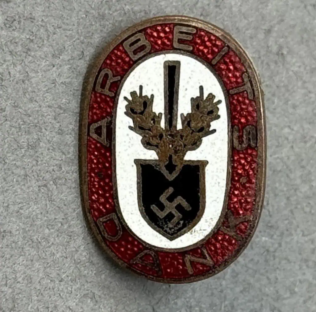 RARE Original WWII German NSDAP (NAZI PARTY) RAD “ARBEITS DANK” LAPEL PIN. (Mitgliednadel) Certified