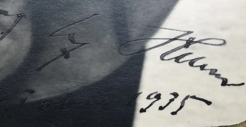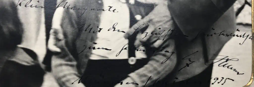 RARE ORIGINAL PHOTOGRAPH, SIGNED (AUTOGRAPHED) BY ADOLF HITLER CERTIFIED. Adolf Hitler Signed and Dedicated Portrait to Young Girl. Large size photo measuring 7 inches x 9 inches. It is still contained in its original mating, overall measuring 11 inches x 13.5 inches. The inscription in black fountain ink reads, ” ‘Klein Margarete – Mit den herzlichsten Glueckwuenschen zum Geburtstag – AH – Muenchen / Oktober 1935’, translated in English to, “‘Little Margarete – with heartfelt wishes for your birthday – Adolf Hitler Munich / October 1935”. a very dark and bold signature of Adolf Hitler hand signed (autographed) in black fountain pen ink. This bold dark signature is about as nice as one can get. We included a few photos of the ink signature under a microscope (see photos) so you can see the ink and how nice it is. A rare VERY OVERSIZE photo of Hitler This autographed photo is In good condition. Complete museum documentation (COA) Provided. Certified by The Gettysburg Museum of History. 100% guaranteed to be authentic. The Gettysburg Museum of History does not support or condone Adolf Hitler or the Nazi Party and is only offering this as a historic relic. Please see our other items. Also note when browsing our web site there are several pages of items, at the bottom of the list look for other page numbers. Hitler Autographed photographs are RARE and Very Desirable To Collectors And Historians! DO NOT MISS THIS! One Of The Best Large Format Versions We Have Offered! If you Want The VERY Best This Is The One!