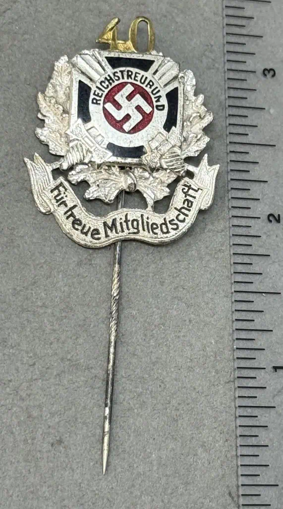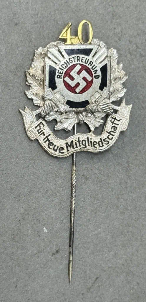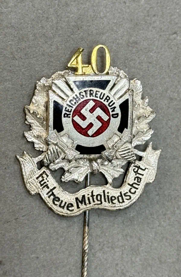 Scarce Original Third Reich Period German Veterans Organization 40 Year Membership Reichstreubund Lapel Badge Certified