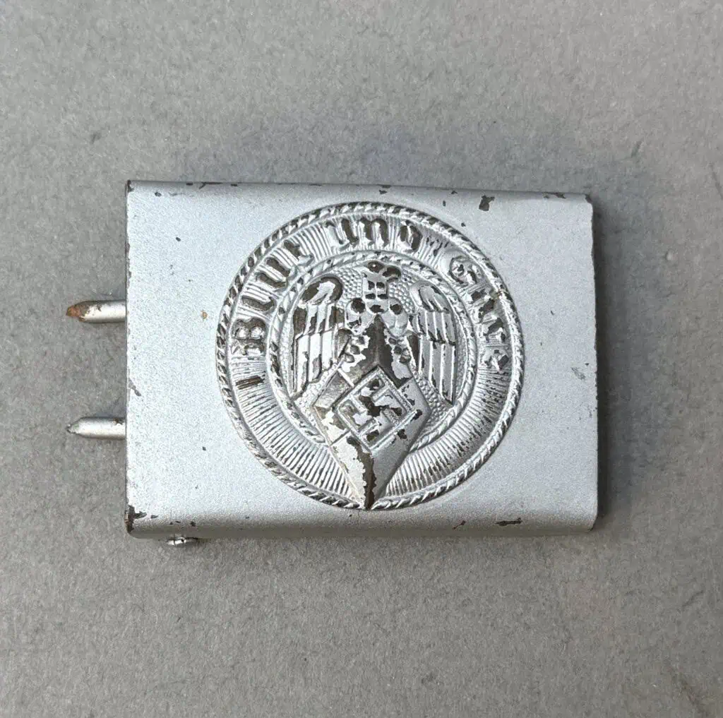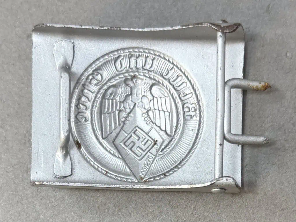 Original Early German Hitler Youth Belt Buckle Brought Home By A U.S. Veteran Certified By The Gettysburg Museum Of History. The Hitler Youth may be traced back to March of 1922, with the formation of the “Jugendbund der NSDAP” (Youth-league of-the NSDAP), under control of the SA. In April of 1924 the “Jugendbund der NSDAP” was renamed “Grossdeutsche Jugendbewegung” (Greater-german Youth-movement), and in July of 1926 the “Grossdeutsche Jugendbewegung” was officially renamed “Hitlerjugend Bund der deutschen Arbeiterjugend” (Hitler-youth League of-the german Worker-youth). Prior to 1925, an assortment of uniform items were worn by “Hitler Jugend” members, mainly consisting of a white shirt and HJ armband. In an attempt to associate themselves more closely with the Nazi Party, the HJ adopted the NSDAP brown shirt in 1925. Their distinctive belt buckle was introduced in 1933. Die struck steel buckle with a silver wash. The buckle features an embossed HJ style national eagle, with down-swept wings, clutching an HJ diamond to the center on a slightly pebbled background field. The eagle is encompassed by a circular ribbed background border with a simulated twisted rope trim to both the inner and outer edges. The circular border has embossed Gothic scripted HJ motto to top, “Blut und Ehre”, (Blood and Honor).The reverse of the buckle is a mirror image of the obverse. The reverse has a brazed on buckle catch, and the prong bar and prongs are all intact!. A nice looking piece! Nice used example showing minimal age and wear. Some use wear. 100% guaranteed to be authentic Brought home by a U.S. solider as a trophy of war. Complete museum documentation (COA) Provided. Certified by The Gettysburg Museum of History. The Gettysburg Museum of History does not support or condone Adolf Hitler or the Nazi Party and is only offering this as a historic relic. Please see our other items. Also note when browsing our web site there are several pages of items, at the bottom of the list look for other page numbers. EXCELLENT EXAMPLE!