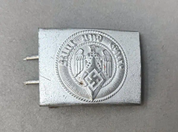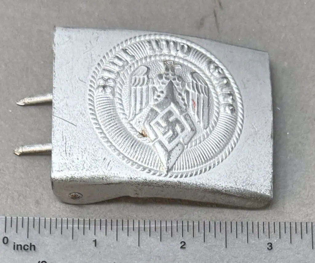 Original Early German Hitler Youth Belt Buckle Brought Home By A U.S. Veteran Certified By The Gettysburg Museum Of History. The Hitler Youth may be traced back to March of 1922, with the formation of the “Jugendbund der NSDAP” (Youth-league of-the NSDAP), under control of the SA. In April of 1924 the “Jugendbund der NSDAP” was renamed “Grossdeutsche Jugendbewegung” (Greater-german Youth-movement), and in July of 1926 the “Grossdeutsche Jugendbewegung” was officially renamed “Hitlerjugend Bund der deutschen Arbeiterjugend” (Hitler-youth League of-the german Worker-youth). Prior to 1925, an assortment of uniform items were worn by “Hitler Jugend” members, mainly consisting of a white shirt and HJ armband. In an attempt to associate themselves more closely with the Nazi Party, the HJ adopted the NSDAP brown shirt in 1925. Their distinctive belt buckle was introduced in 1933. Die struck steel buckle with a silver wash. The buckle features an embossed HJ style national eagle, with down-swept wings, clutching an HJ diamond to the center on a slightly pebbled background field. The eagle is encompassed by a circular ribbed background border with a simulated twisted rope trim to both the inner and outer edges. The circular border has embossed Gothic scripted HJ motto to top, “Blut und Ehre”, (Blood and Honor).The reverse of the buckle is a mirror image of the obverse. The reverse has a brazed on buckle catch, and the prong bar and prongs are all intact!. A nice looking piece! Nice used example showing minimal age and wear. Some use wear. 100% guaranteed to be authentic Brought home by a U.S. solider as a trophy of war. Complete museum documentation (COA) Provided. Certified by The Gettysburg Museum of History. The Gettysburg Museum of History does not support or condone Adolf Hitler or the Nazi Party and is only offering this as a historic relic. Please see our other items. Also note when browsing our web site there are several pages of items, at the bottom of the list look for other page numbers. EXCELLENT EXAMPLE!