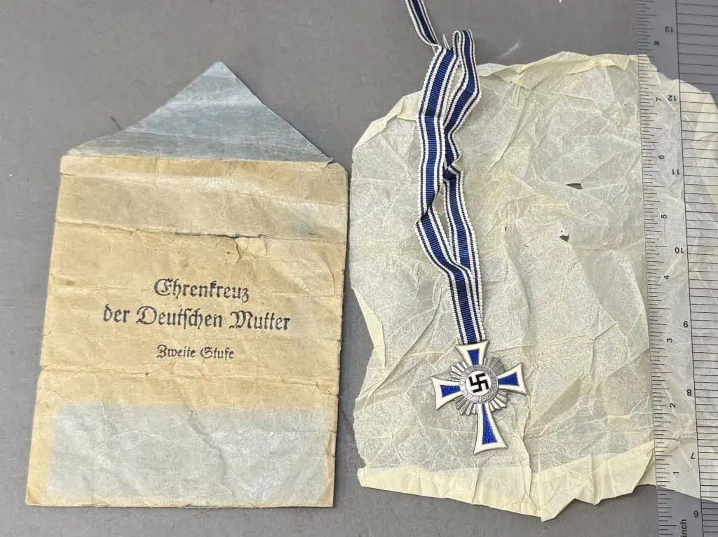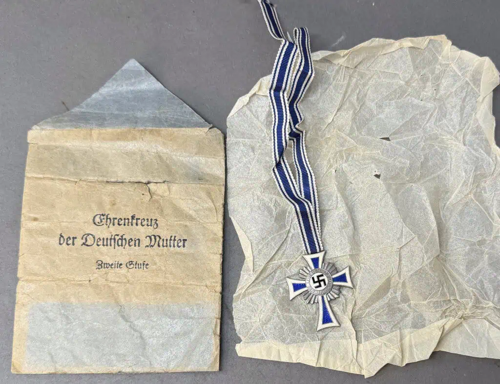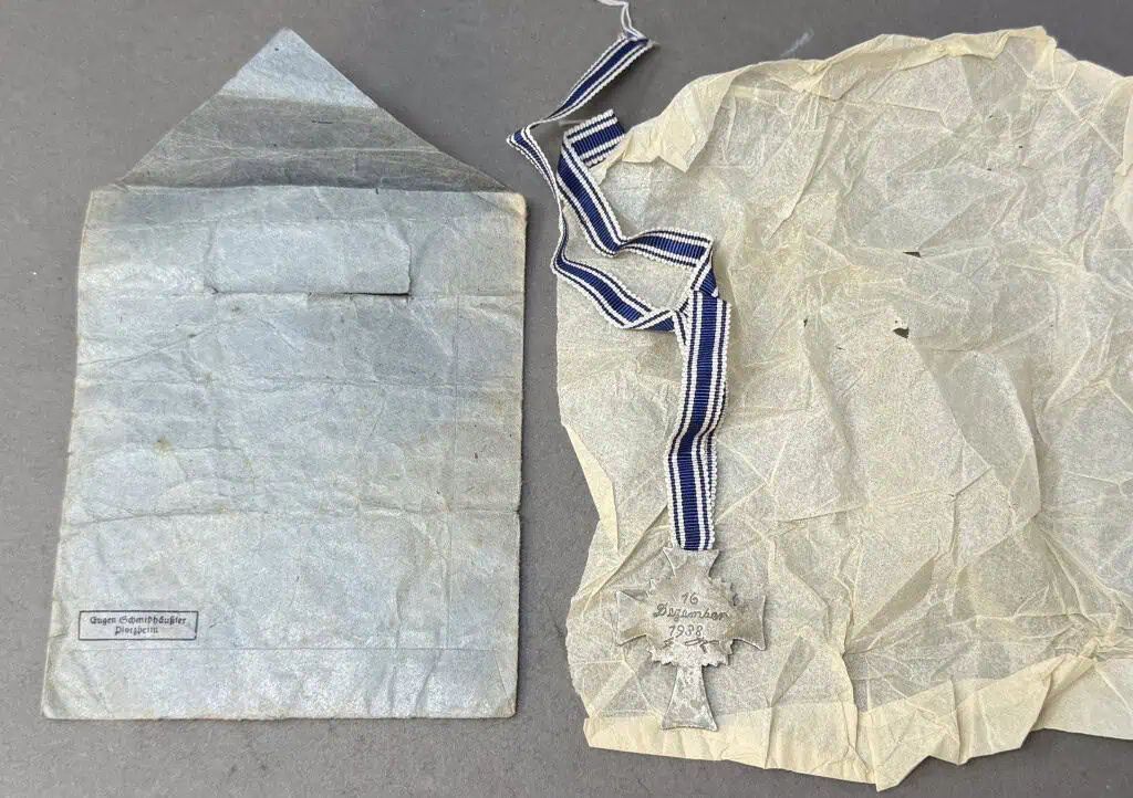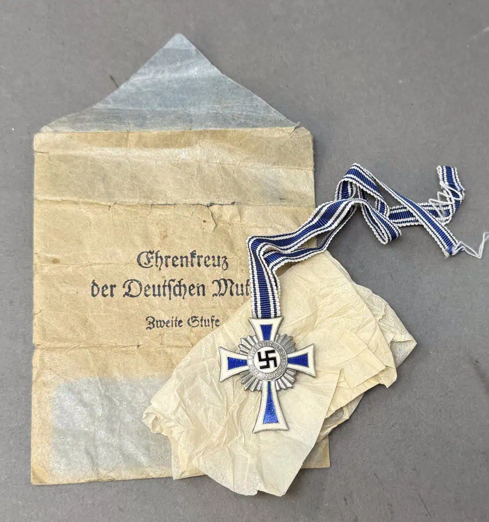 Very Nice Original Third Reich Era German Mother’s Cross Ehrenkreuz der Deutschen Mutter In Silver With Original Envelope Certified