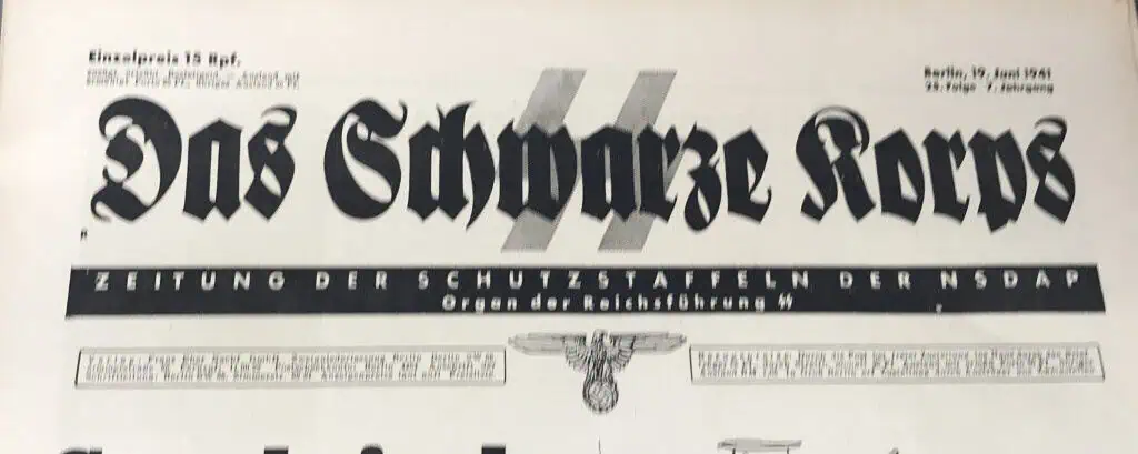 VERY RARE Original German NSDAP (NAZI PARTY) Allgemeine/Waffen SS Official SS Newspaper “Das Schwarze Korps” – 1941 Certified