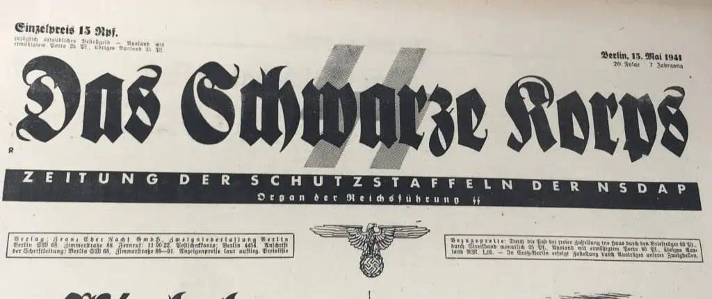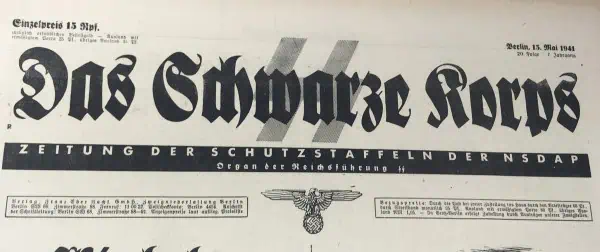 VERY RARE Original German NSDAP (NAZI PARTY) Allgemeine/Waffen SS Official SS Newspaper “Das Schwarze Korps” – 1941 Certified