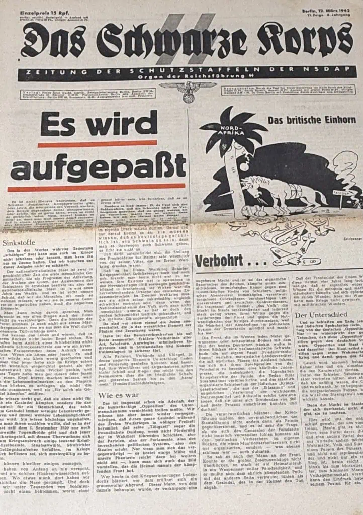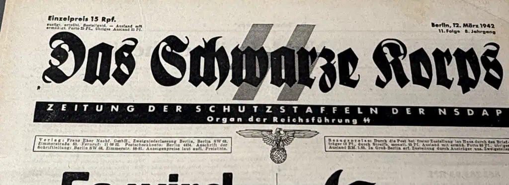 VERY RARE Original German NSDAP (NAZI PARTY) Allgemeine/Waffen SS Official SS Newspaper “Das Schwarze Korps” – 1942 Certified