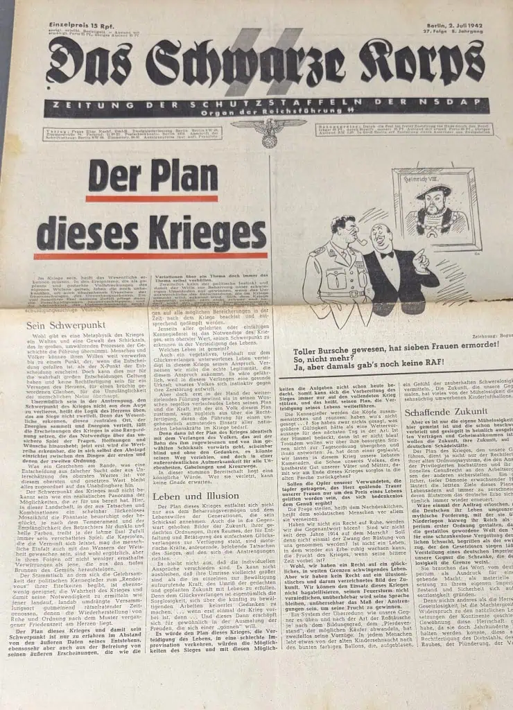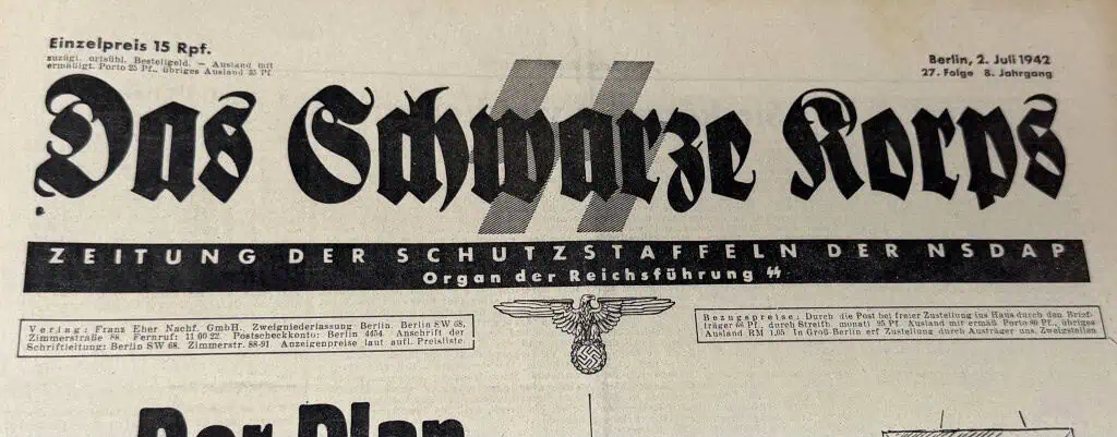 VERY RARE Original German NSDAP (NAZI PARTY) Allgemeine/Waffen SS Official SS Newspaper “Das Schwarze Korps” – 1942 Certified