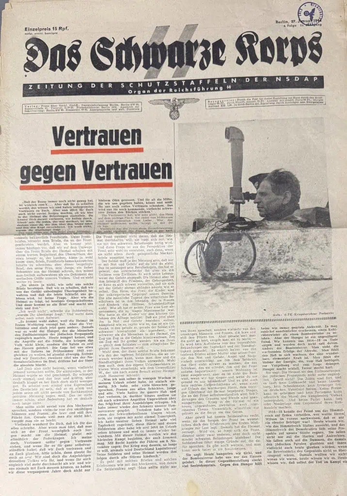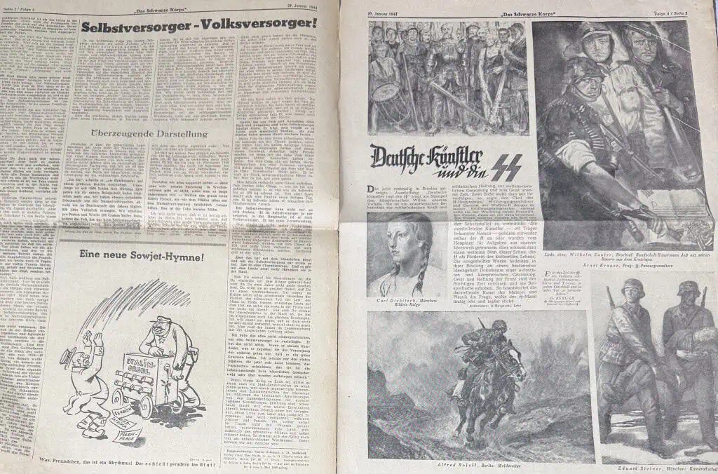 VERY RARE Original German NSDAP (NAZI PARTY) Allgemeine/Waffen SS Official SS Newspaper “Das Schwarze Korps” – 1944 Certified
