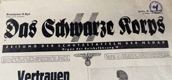 VERY RARE Original German NSDAP (NAZI PARTY) Allgemeine/Waffen SS Official SS Newspaper “Das Schwarze Korps” – 1944 Certified