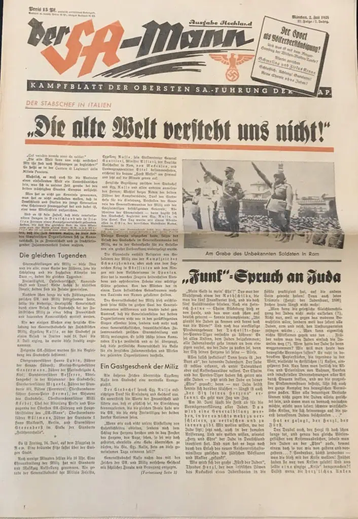 VERY RARE Original German NSDAP (NAZI PARTY) DER SA MAN Newspaper For The German Brown Shirts Certified