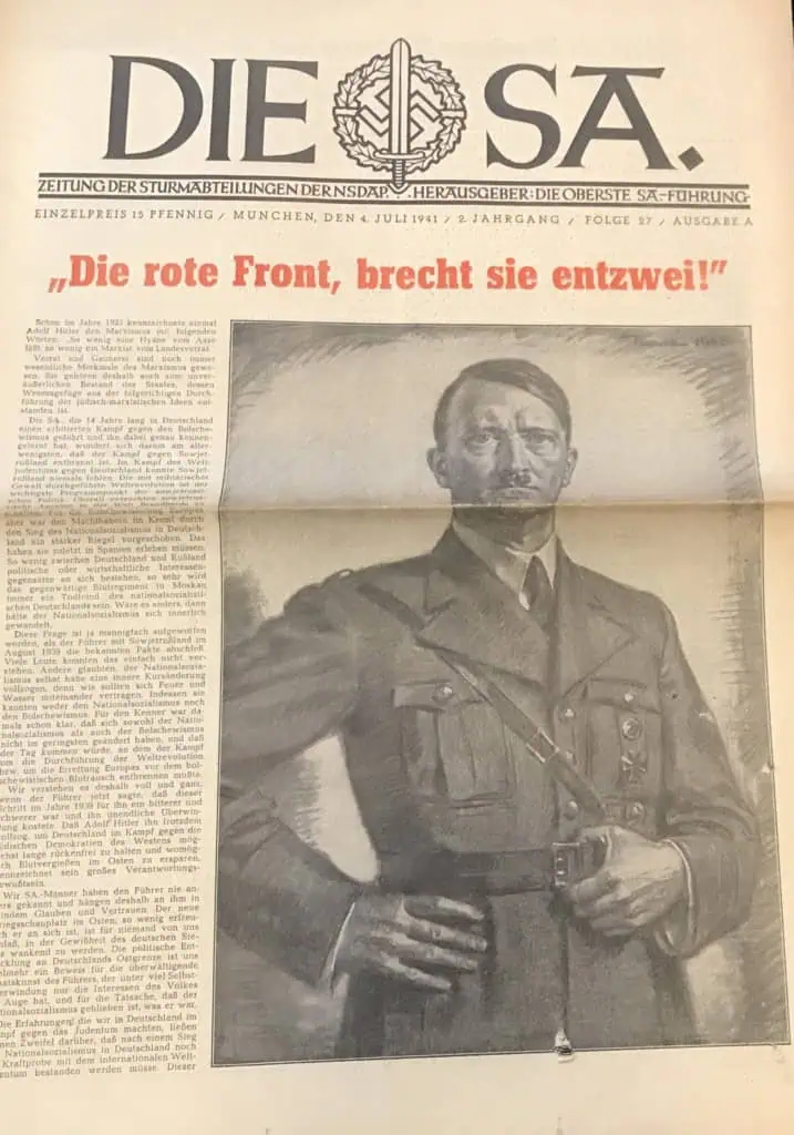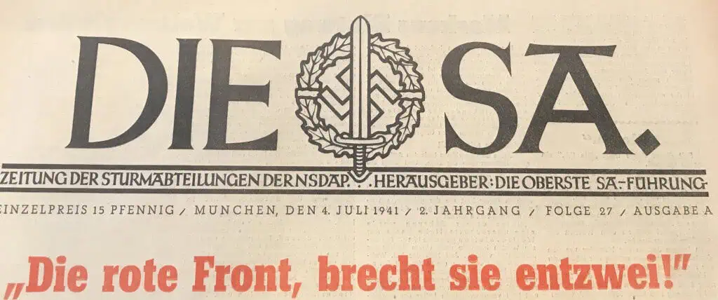 VERY RARE Original German NSDAP (NAZI PARTY) DIE SA Newspaper For The German Brown Shirts Certified