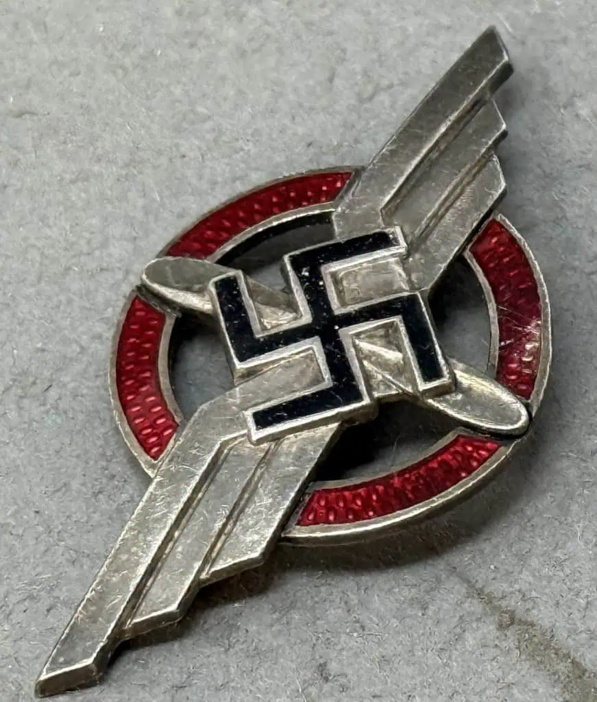 VERY RARE Original German NSDAP (NAZI PARTY) DLV VISOR CAP INSIGNIA. (Mützenabzeichen) Certified