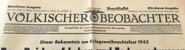 VERY RARE Original German NSDAP (NAZI PARTY) “VOLKISCHER BEOBACHTER” NEWSPAPER. (Zeitung) Certified