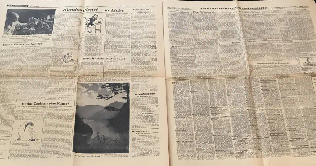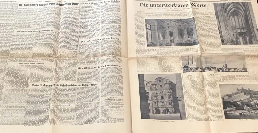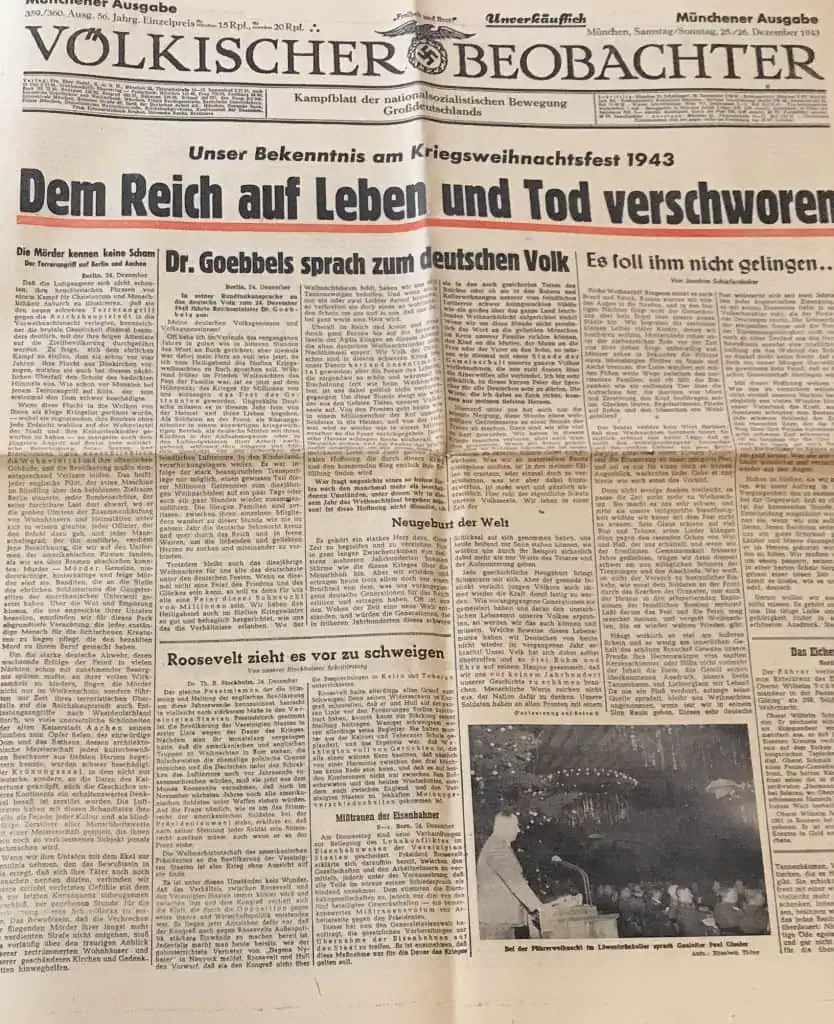 VERY RARE Original German NSDAP (NAZI PARTY) “VOLKISCHER BEOBACHTER” NEWSPAPER. (Zeitung) Certified. A simple party newspaper with daily commuters in mind. A Approximately 45cm x 54cm, The newspaper shows yellowing typical of age, as well as wear to the heavy fold lines to the different sections that contain some very minor storage wear.100% guaranteed to be authentic with Museum COA (Certificate Of Authenticity). Early Nazi Party items are the most superb and desirable artifacts from the Third Reich. We only get the opportunity offer these very rarely. DO NOT MISS THIS! OUTSTANDING EXAMPLE! NAZI PARTY EDITION! Historic edition 1943!!