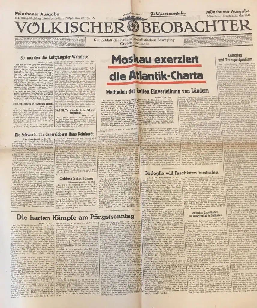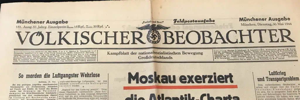 VERY RARE Original German NSDAP (NAZI PARTY) “VOLKISCHER BEOBACHTER” NEWSPAPER. (Zeitung) Certified