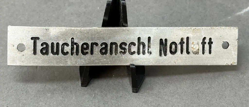 Very Rare Original WWII German Navy Kriegsmarine U-BOAT Data Plate Certified. U-boat nameplates. Nameplates from Uboot, unheard of in the collector’s trade. Each equipment on the ship had its own plate with a description of the device, chest, tools, engine compartments, torpedo compartments and many others. This plate come from U-boats built in the Danziger Werft. Nice example. Some slight loss (see photos). 100% Guaranteed to be authentic Complete museum documentation (COA) Provided. Certified by The Gettysburg Museum of History. Please see our other items. Also note when browsing our web site there are several pages of items, at the bottom of the list look for other page numbers. Great Example! Don’t Miss It! RARE!