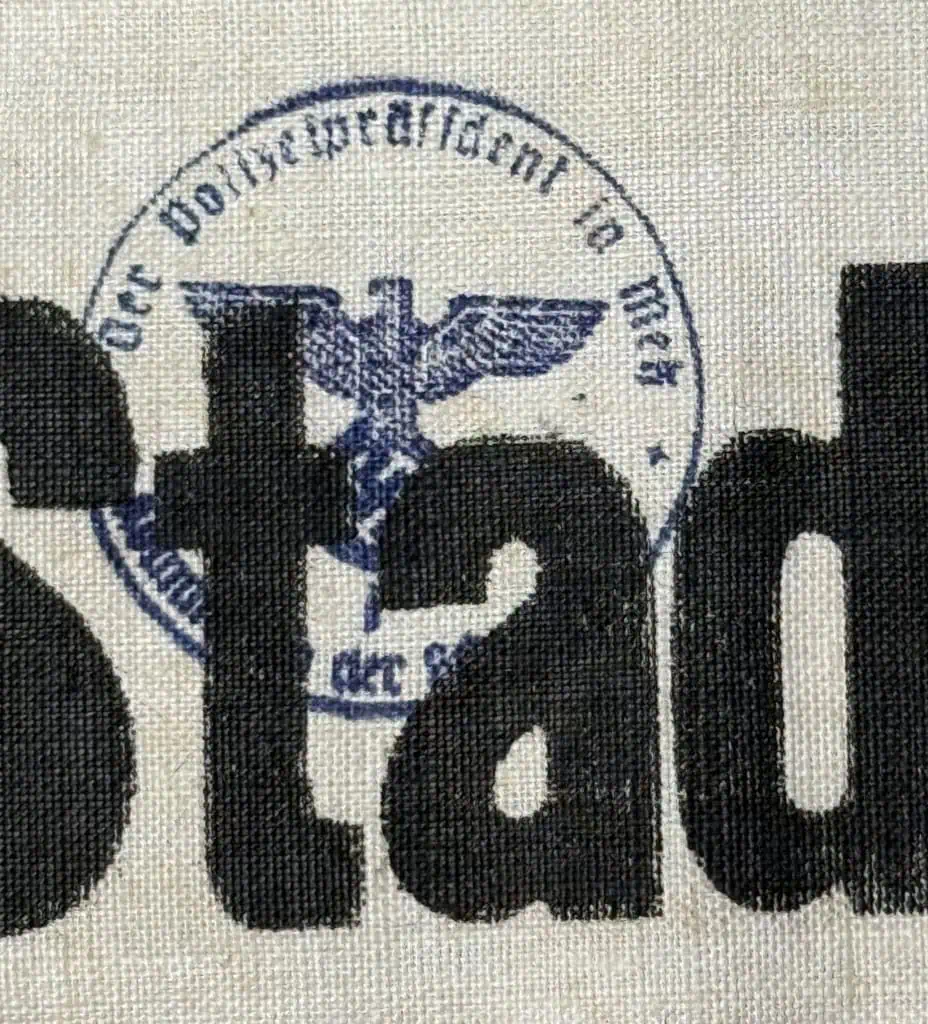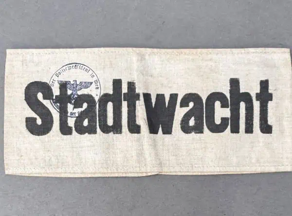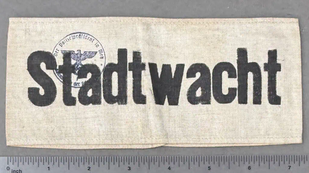 VERY RARE Original WWII German Stadtwacht’ (city guard) ARMBAND. (Ärmelbinde) With Old Note Certified