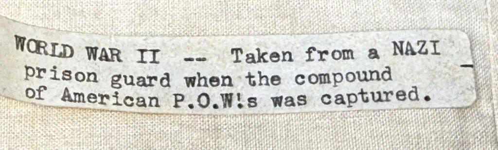VERY RARE Original WWII German Stadtwacht’ (city guard) ARMBAND. (Ärmelbinde) With Old Note Certified. During the Third Reich, an effort was made to unite all of Germany’s disparate provincial police forces and agencies into a single cohesive national unit. To attain this goal, Reichsführer-SS Heinrich Himmler was named Chief of the German Police in the Ministry of the Interior in June 1936. That same month, Himmler implemented new standardized uniforms, headgear, and insignia. The uniforms worn prior to Himmler’s appointment were often navy blue, particularly in what had been Prussia. The new uniforms were green, in a shade that was then dubbed “Police green”. The German Police were divided into two main units, the Ordnungspolizei (Orps or Regular Police) and the Sicherheitspolizei (Secret Police); the Ordnungspolizei were unofficially called the green police (Grüne Polizei) as a result of their uniform colour. The Sicherheitspolizei were made up of two main organizations, the Gestapo and the Kriminalpolizei (Criminal Investigation Police). At the beginning of the Second World War, the Sicherheitspolizei were brought under the auspices of the Reich Main Security Office. Armbands were worn to identify a special purpose or assignment of the wearer. This could be temporary, in which case the armband would only be worn for the duration of the task. Armbands often featured a control stamp (generally in ink) given by an office or authority. Armbands were generally worn on the upper left sleeve. The armband ‘Stadtwacht’ (city guard) was worn by members of a militia-like force established on November 9, 1942. It is white with black Latin letters. With City stamp. Has an old note on the back that has where it was taken (see photos) This Armband remains in great shape, with bright original color, and only extremely light soiling and age toning. It has a striking look, and displays great. Gettysburg Museum Certified (COA) provided. Rare 100% Guaranteed to be authentic. Sold for historic purposes only. See our other pieces on our web site. Also note when browsing our web site there are several pages of items, at the bottom of the list look for other page numbers. VERY RARE!! Nice note!