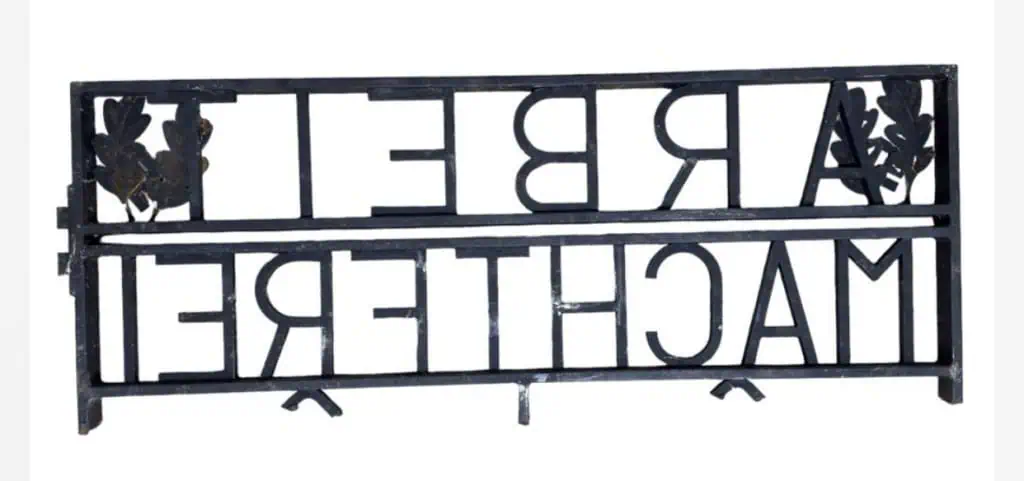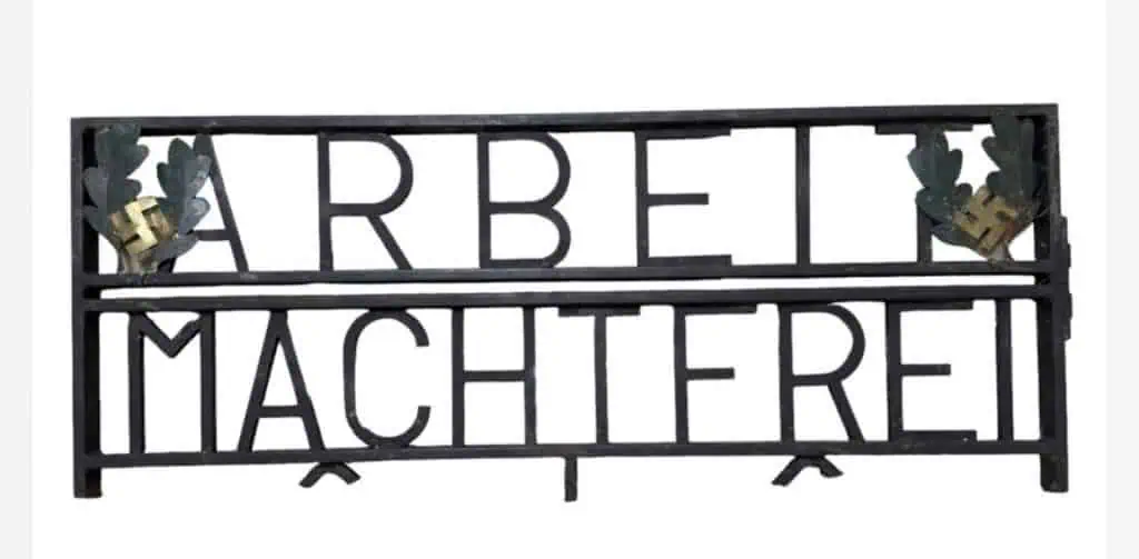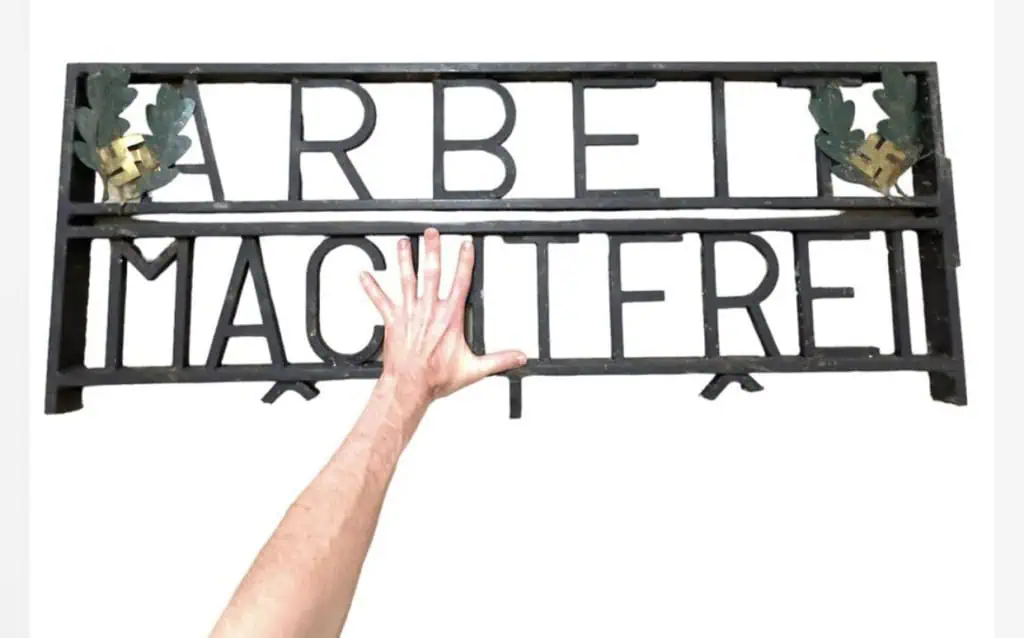 VERY RARE USED Arbeit Macht Frei iron sign from KL Osthofen Concentration Camp Certified By The Gettysburg Museum Of History