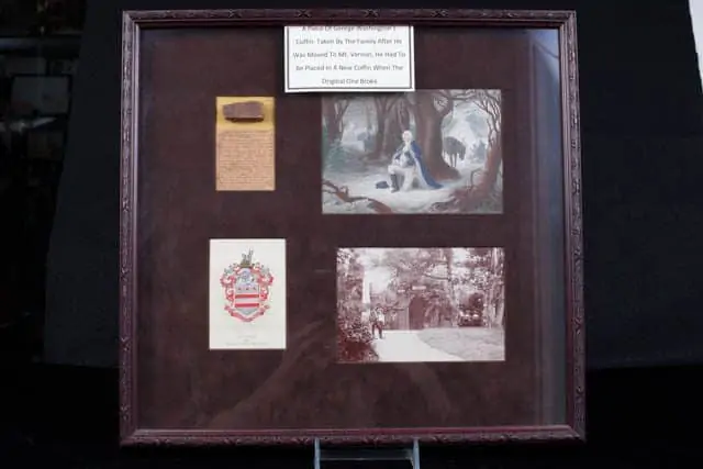 Part of GeorgeWashington’s Coffin. When George Washington’s body was moved to the tomb at Mount Vernon in 1831 the original coffin broke. He was placed in a new coffin and the family took pieces of the original coffin. This piece was one of those pieces.