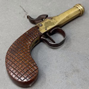 Outstanding Original Civil War Period Cap And Ball .44 Caliber Brass Frame “Cannon Barrel” Antique Pistol Certified