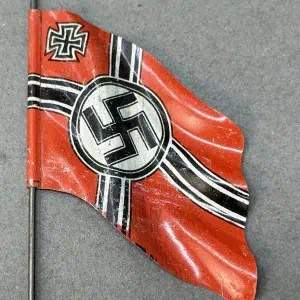 ORIGINAL WWII German NSDAP (NAZI) NATIONAL WAR FLAG. (Reichskriegsflagge) LINEOL Toy Soldier Kriegsmarine Painted Metal Flag Certified