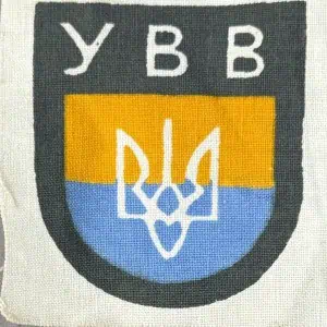 Original WWII German Army (Heer) UKRAINIAN “YBB” VOLUNTEER’S SLEEVE SHIELD. (Ukranian Landeschilde) Certified