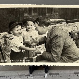 Outstanding Original Classic Adolf Hitler Photo Postcard With Youth By Hoffman Circa 1930’s Certified By The Gettysburg Museum Of History