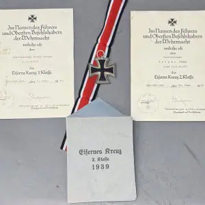 Original WWII German Named Iron Cross Second Class Medal With Original Envelope And Issue Document Classic WWII German Iron Cross. Eisernes Kreuz II Klasse AKA EK2. Plus EK 1 Document Certified