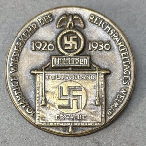 Original German NSDAP (NAZI PARTY) 1926-1936 COMMEMORATIVE PARTY DAY BADGE. (Partietagsabzeichen) Certified