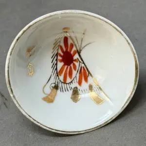 Original WWII Japanese Patriotic Saki Cup With Rising Sun Flag And Kanji Certified By The Gettysburg Museum Of History