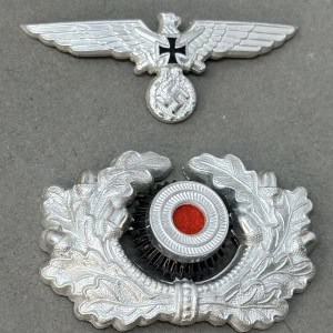 Original WWII German Army (Heer) EM/NCO’S M44 TRAPEZOID CAP INSIGNIA. (Mützen Abzeichen) Certified
