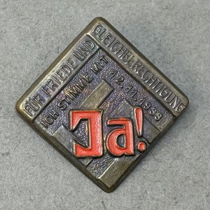 Original Mega Rare German Adolf Hitler 1933 Election “JA” (YES) For Hitler Badge Certified