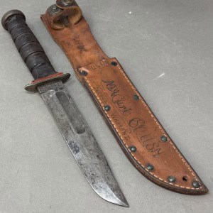 Original WWII Navy Mark 2 Fighting Knife With Original Leather Sheath And Sailor Art Certified