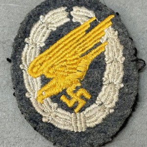 Original WWII German Luftwaffe Paratrooper Badge In Cloth Certified