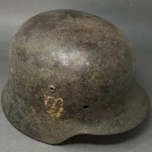 Original WWII German Waffen SS M-40 Single Decal Combat Helmet Relic Certified