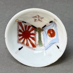 Original WWII Japanese Patriotic Saki Cup With Rising Sun Flag And Kanji Certified By The Gettysburg Museum Of History