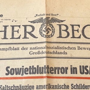 VERY RARE Original German NSDAP (NAZI PARTY) “VOLKISCHER BEOBACHTER” NEWSPAPER. (Zeitung) Certified