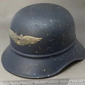 Original OUTSTANDING WWII German LUFTSCHUTZ BEADED M38 GLADIATOR HELMET. (Stahlhelm M38) Certified