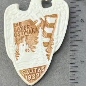 Original German NSDAP (NAZI PARTY) Porcelain Day Badge, DIE BAYER OSTMARK RUFT 1937 CERTIFIED
