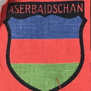 Original WWII German Army (Heer) ASERBEIDSHANIAN VOLUNTEERS SLEEVE SHIELD. (Aserbaidschan Landeschilde) Certified