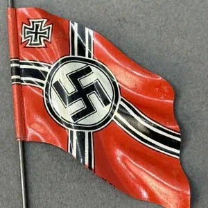 ORIGINAL WWII German NSDAP (NAZI) NATIONAL WAR FLAG. (Reichskriegsflagge) LINEOL Toy Soldier Kriegsmarine Painted Metal Flag Certified